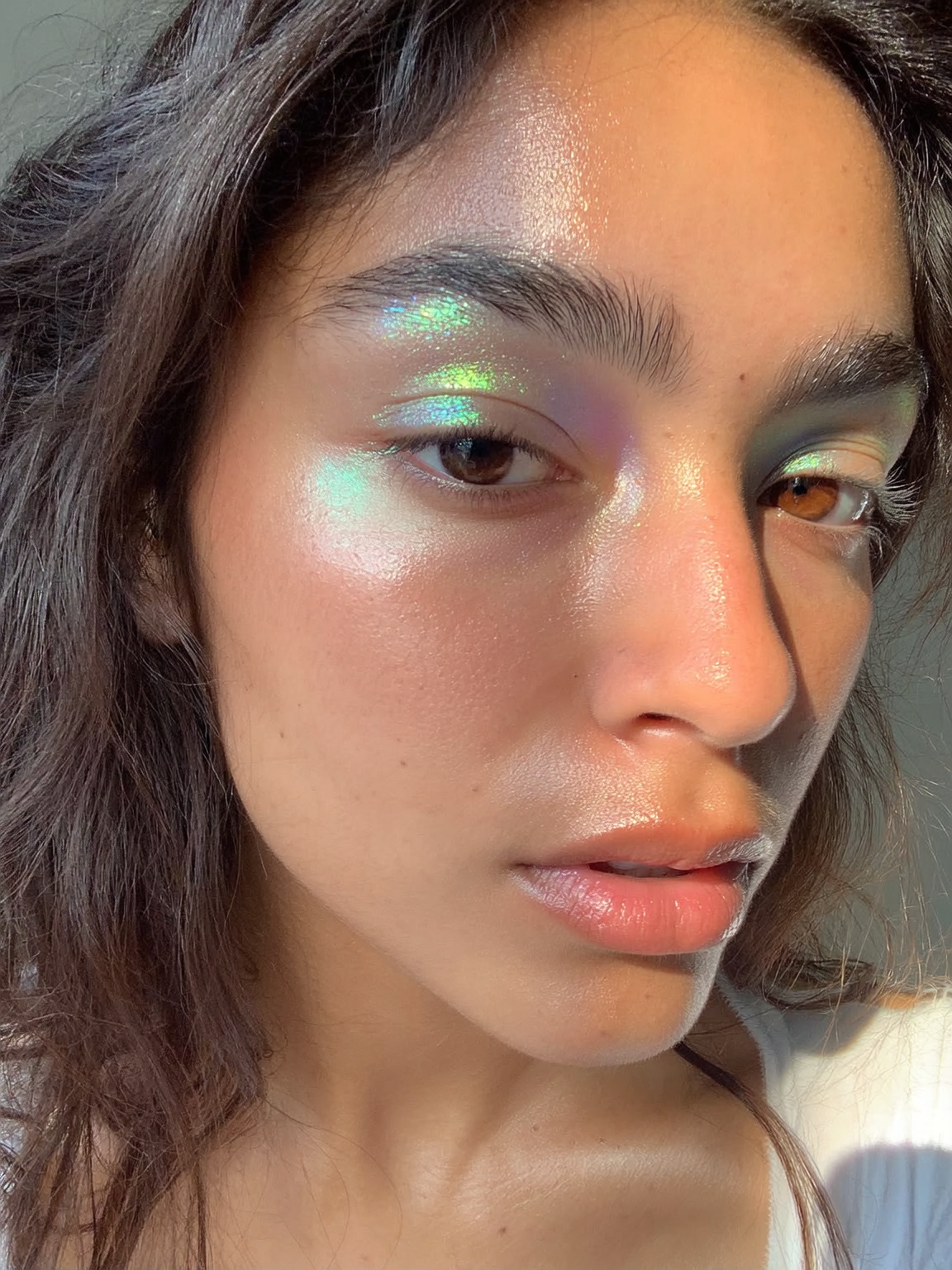 Multiusos y duradero: sombra o iluminador con textura aterciopelada y pigmento suelto.