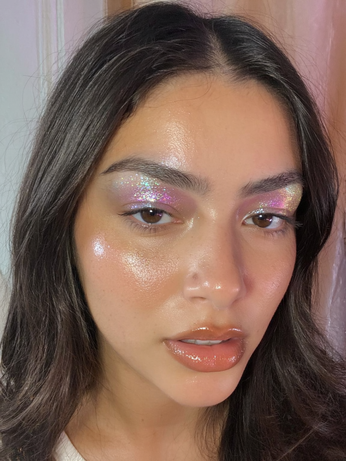 Un hipnotizante duocromo que cambia entre un suave rosa y un dorado radiante, Con partículas ultra finas de brillo, ofrece un resplandor intenso y sedoso que atrapa la luz en cada movimiento.